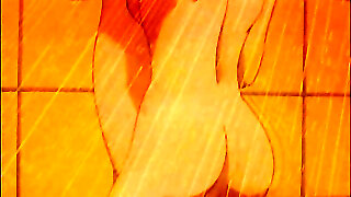 Lesbian hentai licking pussy in the shower