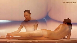 Russian teene Funtik gets oil rubbed by lesbian masseuse