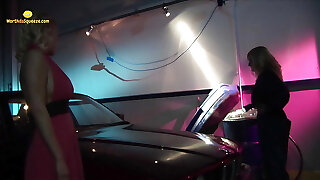 Lesbian fucked mature milf in the car. Big tits and fat ass in sexy underwear. Point Of View.