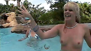 Naughty sweet honey in the pool and lesbians in sea on Tenerife