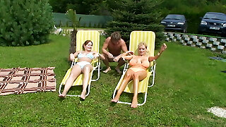 Outdoor five way lezzie orgy