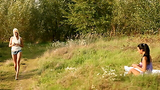 Zwei heisse Teenies mit prallen titten ficken sich im freien